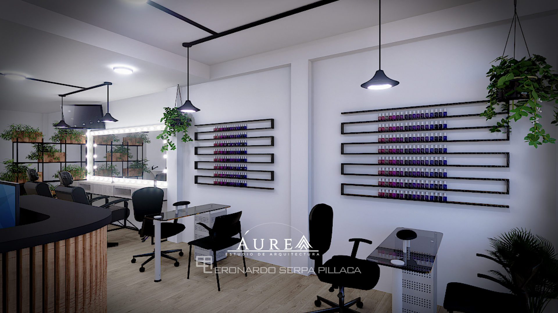 Este proyecto de remodelación para una barbería con un toque de spa, ubicada en Ica, Perú, se caracteriza por su enfoque en la elegancia minimalista y la tranquilidad natural. La iluminación neutra crea un ambiente sereno y acogedor, realzando la sensación de calma y bienestar. Los tonos blancos predominantes aportan luminosidad y frescura al espacio, mientras que los toques de madera y detalles en verde de las plantas interiores y maceteros añaden un toque orgánico y relajante. Esta combinación de elementos naturales y estéticamente limpios crea una atmósfera armoniosa que invita a los clientes a disfrutar de una experiencia de cuidado personal única y rejuvenecedora en este oasis urbano de belleza y relajación en el corazón de Ica.
